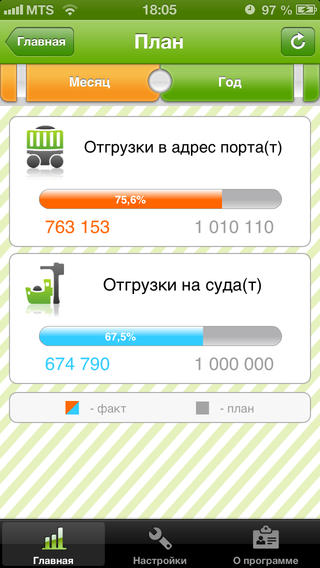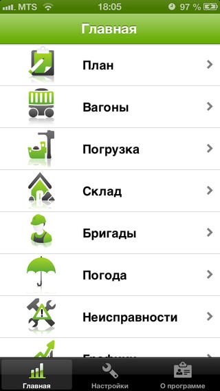 Приложение представляет собой монитор производственных показателей для пользователей информационно-логистической системы ILSAR. Приложение в наглядной форме выводит основные показатели деятельности предприятия, такие как: — План (Месяц, Год); — Вагоны (Выгрузка, Подход); — Погрузка (Погрузка, Подход); — Склад (Группировка по программам); — Бригады (Месяц, Год); — Погода; — Неисправности (Детализация неисправностей); — Графики.