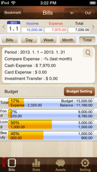 — Это полезная программа помогающая в управлении личными денежными ресурсами. Она предоставляет возможность контролировать доходы, расходы, общую сумму денег помесячно и статистические данные. При использовании функций системы двойной записи, возможно одновременный учет основных средств с записью. Возможности: — Функция изменения стандартного дня месяца — Функция калькулятора — ON- OFF малой классификации — Hастройка бюджета — Регистрация и импортирование часто используемой разбивки — Поиск.