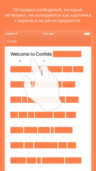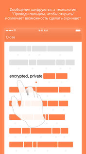 — Программа для обмена конфиденциальными сообщениями для мобильных устройств iOS. Confide обладает защитой от создания скриншотов и удаляет сообщения сразу же, после прочтения, без возможности восстановления. Так же, Confide позволит отправлять сообщения на любой адрес электронной почты или на номер телефона, уведомляя вас о прочтении сообщения получателем.