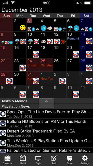 — Удобный календарь с функциями планировщика событий, обладающий необычайно привлекательным и удобным интерфейсом. Вы сможете настроить его так, чтобы он отвечал всем вашим требованиям. Просматривайте календарь помесячно или понедельно, используйте уникальные стили оформления, отмечайте важные дни в календаре, прикрепляйте к ним заметки и многое другое.