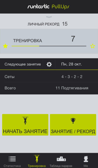 Программа, которая поможет вам научиться правильно подтягиваться. Приложение предоставит вам наиболее эффективную программу тренировок с подтягиваниями и проследит за её исполнением. Программа будет считать каждый ваш жим при помощи акселерометра вашего мобильного устройства. Так же это приложение может давать вам голосовые советы и подсчитывать время передышки между подходами. Своими рекордами и достижениями вы можете поделиться с друзьями через Facebook*, Google+, Twitter, а так же при помощи электронной почты.