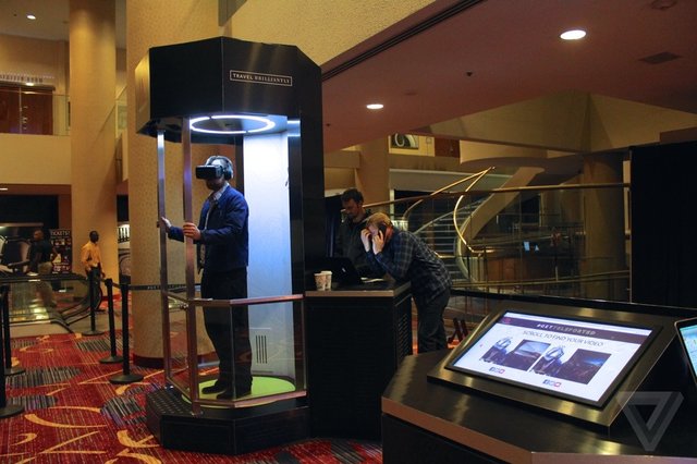 Так что, если вы готовы к таким путешествиям, вам придется подписать один документ, который постепенно становятся стандартным при использовании виртуальных технологий, и освобождающий Marriott от ответственности за головокружение, тошноту, и любые другие возможные побочные эффекты. И вперед, в кабинку виртуальной реальности, где вас ждут очки Rift и наушники.