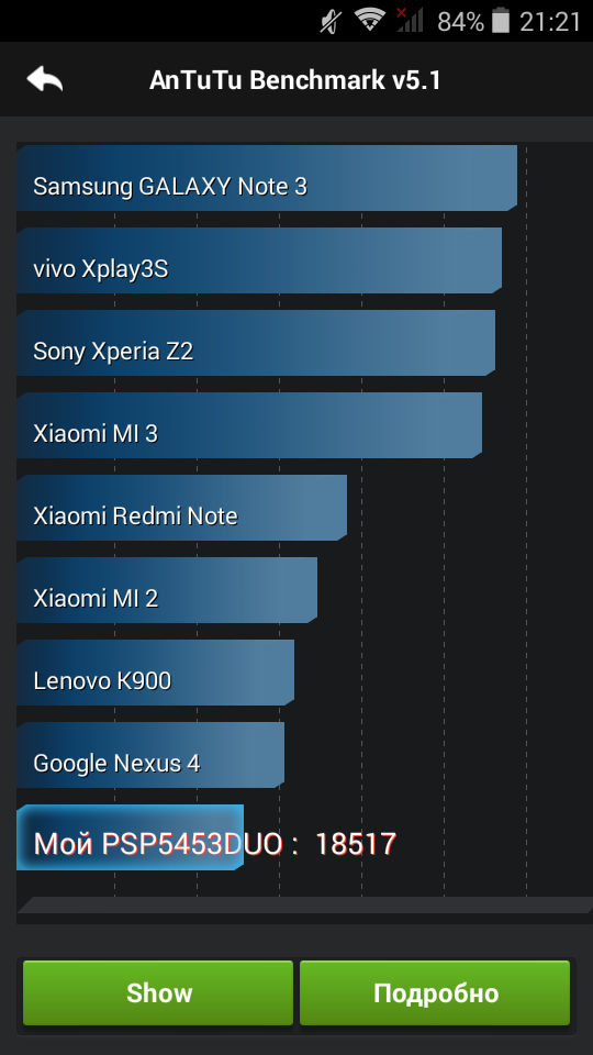 Prestigio 5453 DUO оборудован аккумулятором с емкостью 1700 мАч. Емкость аккумулятора вполне стандартная для 4.5 дюймовых устройств, но видимо оптимизация драйверов и системы немного подкачала, смартфон держит заряд в режиме Wi-Fi серфинга всего 6 часов 2 минуты.