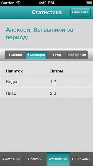 — Настоящее приложение разработано исключительно в развлекательных целях. Результаты расчета должны восприниматься как развлечение, не оценивают возможность пользователя управлять транспортным средством, не являются доказательством в суде и не могут трактоваться как медицинское заключение. Момент наступления отрезвления рассчитывается по средним показателям, не учитывая внешних факторов и физического состояния пользователя. Результат расчета не может расцениваться как достоверный и является шуткой. Приложение содержит обширный перечень популярных алкогольных напитков, позволяет выбрать количество употребленного алкоголя и хранит записи о выпитом пользователем за все время.