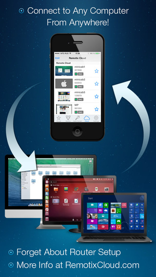 — Это приложение позволит управлять вашим Mac или PC с мобильного устройства. Возможности — Удаленный доступ к Mac OS X, Linux и Windows — Высокая скорость и качество подключения — SSH туннель с возможностью аутентификации по паролю и публичному ключу — Сканер локальной сети и диапазона IP-адресов — Поиск подключений через Bonjour — Универсален для iPhone и iPad.