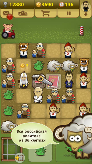 ДЕМОКРАТИЯ – увлекательная головоломка о политической жизни страны. Пройди все этапы выборов, стань Президентом, распили Бюджет! Цель игры проста – расставить все объекты на поле, мутировать их дальше и дальше. Три и более одинаковых фигурки рядом превращаются в новую фигурку. Депутаты – в Думу, Министры – в Правительство, и так далее. Каждый ход появляются новые фигурки, продолжай собирать их по три, продержись дольше всех, дойди до Премьера и Президента… а, может быть, и кого-то покруче! Особенности игры — Выборы проходят без вброса бюллетеней — Двое из 5 кандидатов в Президенты уже здесь! — Злободневно, остроумно и увлекательно — Логика авторов взрывает мозг — Поддержка retina display и старого доброго 3G