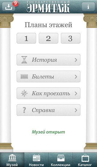 Государственный Эрмитаж представляет официальное приложение для iPhone и iPad. С помощью приложения вы сможете совершать увлекательные экскурсии по залам музея, любоваться роскошными дворцовыми интерьерами парадной резиденции российских императоров и наслаждаться шедеврами эрмитажной коллекции, узнавая про них все больше и больше. Приложение поможет вам: • сохранить понравившееся изображение; • послать электронную открытку друзьям в twitter; • познакомиться с музейными новостями; • узнать о событиях и выставках; • создать свою коллекцию любимых произведений. В разделе «Магазин» вашему вниманию предлагаются дополнения, которые вы можете установить бесплатно или купить: • виртуальные прогулки; • образовательные курсы; • тематические экскурсии. Мы будем регулярно выпускать для вас новые дополнения в раздел «Магазин» и отправлять вам уведомления. Благодаря нашему приложению вы окажетесь в одном из крупнейших музеев мира, коллекция которого насчитывает около 3000000 экспонатов. Вы увидите величайшие произведения живописи и скульптуры, ювелирные украшения и старинное оружие, предметы декоративно-прикладного искусства тончайшей работы и уникальные археологические находки. Тем, кто захочет приехать в Эрмитаж, приложение поможет проложить маршрут до музея в Санкт-Петербурге, а сориентироваться внутри – позволят интерактивные планы этажей. Программа напомнит вам, сколько времени осталось до закрытия или открытия. Пусть каждый найдет свой Эрмитаж!