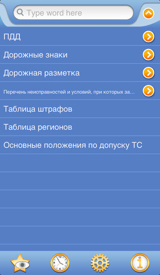 Это справочник по актуальным правилам дорожного движения России, штрафам, дорожным знакам, разметке, регионам. Основные особенности: — История – каждая статья, которую вы когда-либо просматривали сохраняется в истории. — Избранное – вы можете добавить статью в список избранного, нажав иконку “звездочка”. — Управление списками Истории и Избранного – вы можете редактировать эти списки или очистить их. — Различные настройки – вы можете менять шрифт и тему (выбрать одну из цветовых тем).