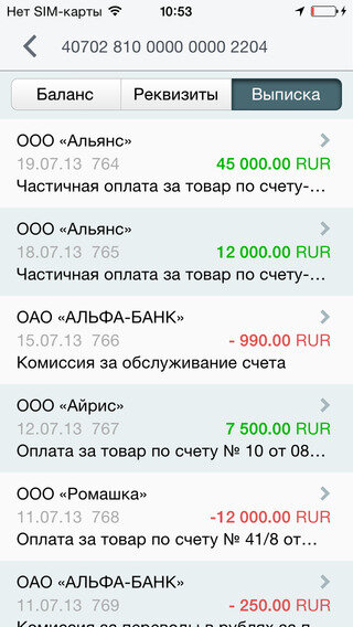 — Новый, удобный и простой мобильный банк для ЮРИДИЧЕСКИХ ЛИЦ, доступный клиентам «Альфа-Банка». Мобильное приложение «Альфа-Бизнес» по Вашему местонахождению определяет: — отделения Альфа-Банка, обслуживающие юридических лиц; — банкоматы, принимающие карты «Альфа-Cash» для работы с расчетным счетом Вашей компании; — также Вы будете в курсе последних бизнес-новостей. Клиентам «Альфа-Бизнес Онлайн» предоставляется уникальная возможность, работая в Мобильном Банке, получать информацию по остаткам на счетах компании, а также выписку по последним операциям.