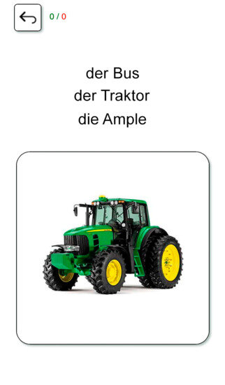 — Эта увлекательная и развивающая игра является мобильным репетитором для самостоятельного изучения лексики и фонетики немецкого языка начального уровня. Список слов специально подобран из различных тем, используемых в повседневной жизни. Данный самоучитель позволяет эффективно научиться правильному произношению и написанию, за счет наличия визуального и аудио сопровождения. Для лучшего освоения материала обучение построено в несколько этапов игры: • Тренинг — запоминание алфавита, существительных, прилагательных, глаголов с транскрипцией при помощи карточек и звукового сопровождения. • Тестирование и проверка выученных слов организована в виде веселых, легких и понятных игр: 1. Чтение и ассоциация: выбор правильного варианта слова к картинке. 2. Визуализация: выбор динамически движущихся изображений к списку слов. 3. Тест на правописание: написание слов и проверка орфографии.
