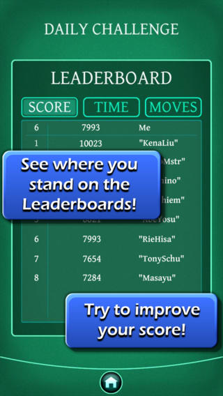 Новая вариация привычной карточной игры Косынка от компании Konami. Solitaire: Daily Challenge предоставляет игроку возможность полностью настроить оформление игры, изменяя вид стола, рубашки карт и проч. Игра стала ещё интереснее, благодаря наличию ежедневных квестов, а так же системе игровых достижений. Solitaire: Daily Challenge позволяет играть в режим вытягивания по одной или по три карты. Результатами своей игры вы можете поделиться с друзьями, а наличие глобальной таблицы рекордов поможет вам поведать о своих успехах всему миру.