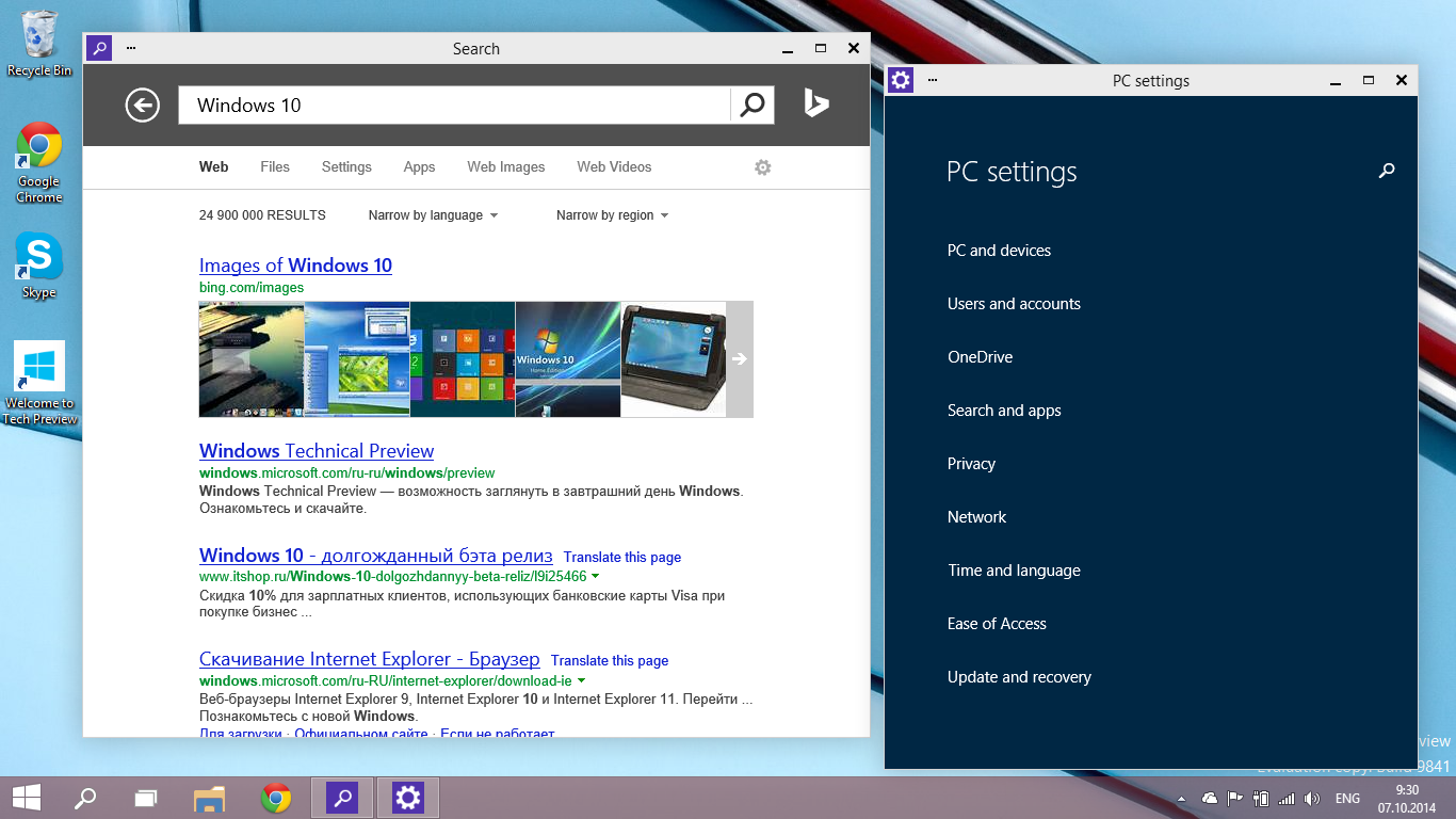 Как известно, в революционной Windows 8 появилась возможность разделять рабочее пространство экрана на две части, а в Windows 8.1 и подавно на три или более того. Функция получила название «Snap». Проблема кроется только лишь в том, что эту функцию поддерживают приложения, разработанные специально для пользовательского интерфейса Modern. Однако, в Windows Technical Preview (а значит и впоследствии в Windows 10, соответственно) Snap доработали до версии 2.0 и теперь она поддерживает привычный режим рабочего стола, причем разделенные на экране приложения и программы будут показываться в таком порядке, в каком предпочитает сама операционная система.