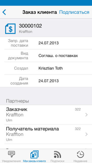 — Эта программа позволит вам получать актуальную информацию по заказам ваших клиентов на свое мобильное устройство в любом месте и в любое время. Вы сможете подключаться к SAP ERP и просматривать информацию по каждому заказу в отдельности и получать уведомления при обновлении информации в заказах.