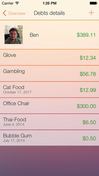 Твои друзья постоянно просят у тебя денег взаймы? И ты часто забываешь об этом? Тогда приложение «должники» разработано специально для тебя. С помощью этого приложения тебе легко будет понять, кто сколько тебе должен. Все займы суммируются. ( Например: 200 руб.за пиццу, 400 руб.за кино, общая сумма: 600 руб.) Ты также можешь отмечать, сколько денег ты должен своим друзьям. В приложении имеются тексты, которые ты можешь скопировать. Такие тексты ты сможешь отправить своим друзьям по смс, чтобы напомнить им о долгах. Бесплатная версия приложения, содержит рекламу.