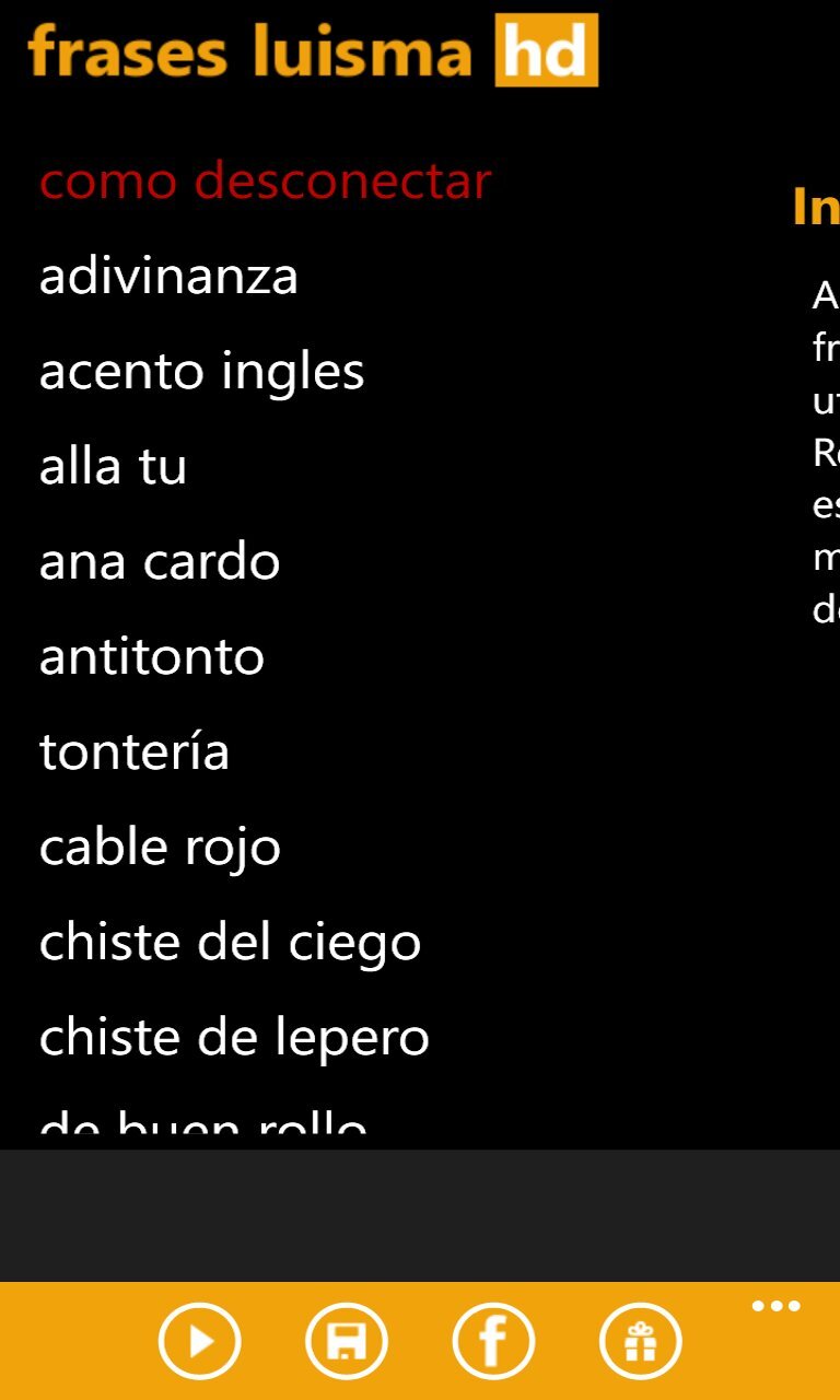 Frases Luisma Приложения / Windows Phone 8 Сборник фраз из сериала «Aida». Насладитесь самыми забавными фразами на испанском языке из любимого сериала и установите их в качестве рингтона.Обновлено: 17 октября 2014, 23:19. Loader Золотой издатель Комментариев пока нет Оставьте комментарий...