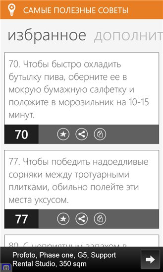 [*] Возможность поделиться фактом через социальные сети, СМС, почту