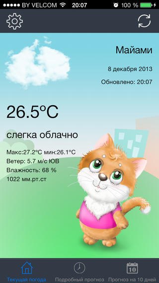 МетеоКот Приложения / Apple iOS / Погода Красивое, удобное и простое погодное приложение — приятный интерфейс — добрый кот, который всегда одевается по погоде — актуальная информация о погоде всегда под рукойОбновлено: 26 октября 2014, 11:31. Ironmoon Пользователь Комментариев пока нет Оставьте комментарий...