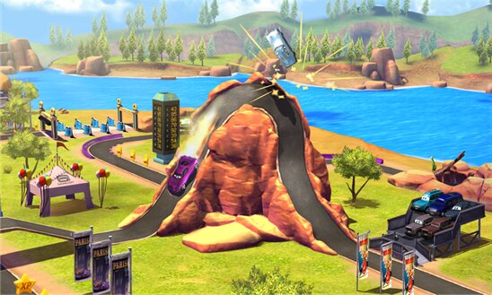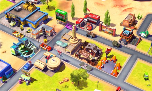 Молния Маккуин и Мэтр решили устроить гоночную феерию в Радиатор Спрингс! Им нужны таланты! Покажи им драйв! Мчись навстречу ветру с персонажами из Тачек! Тебя ждет увлекательная аркадная гоночная игра! Построй собственный трехмерный Радиатор Спрингс, дом Молнии и его веселых друзей, и преврати его в процветающий город!