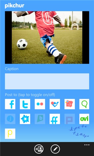Pikchur для Windows Phone 7.5. Приложение, с помощью которого обмениваться любимыми фотографиями станет намного проще и быстрее, размещая их одновременно в нескольких микроблогах, соцсетях и сервисах. Как это сделать? Необходимо пройти регистрацию в приложении, затем добавить в список аккаунты желаемых социальных сетей и микроблогов. Благодаря функциям и настройкам, можно установить прямую отправку фото, так же фото можно корректировать, с помощью встроенных фильтров и подписывать оригинальными комментариями.