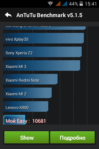 Учитывая бюджетность устройства MediaTek MT6572 и Mali-400 MP являются довольно сносной связкой, а 512 мегабайт оперативной памяти даже как-то радуют. В качестве ОС тут еще свежий Android 4.4.2, который нормально работает с таким железом. Лагов в интерфейсе не было замечено (вот тут НЕ вру), простенькие аркады типа Angry Birds и Subway Surf не зависают и работают без задержек.
