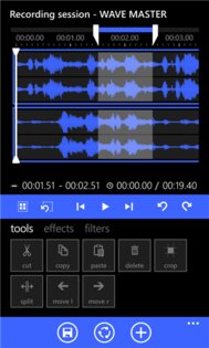 Если Вы всегда мечтали о том, чтобы использовать свой Windows Phone-смартфон для редактирования аудиофайлов, тогда Вам крупно повезло, так как в WPStore есть приложение под названием «Wave Master», которое готово предоставить такую возможность. В нем содержится неплохой перечень функций и инструментов, которые помогут Вам в Вашем творчестве. Так, с помощью него, Вы сможете выполнить не только стандартные операции по копированию, перемещению, обрезке или удалению фрагментов трека, но и расширенные: изменить высоту тона и увеличить скорость звукового потока, отключить/включить звук, отредактировать метаданные, просмотреть график трека и другое. Приложение умеет работать с форматами MP3, WAV, AAC. Полученный результат можно будет сохранить в музыкальную коллекцию, в облачное хранилище OneDrive или же поделиться им на SoundCloud.