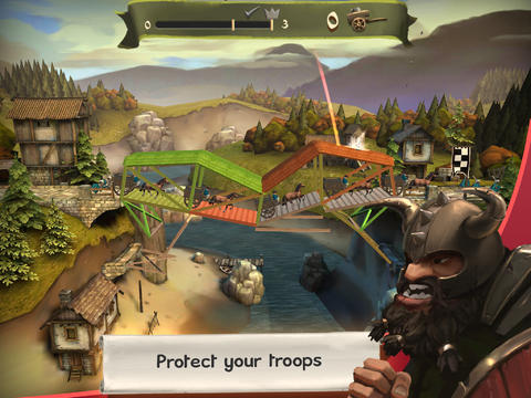 На уровне осады, ваш мост будет подвергнут бомбардировке вражескими катапультами. Укрепить свой мост так, чтобы он не разрушался и защитите собственные войска на крытом мосту.