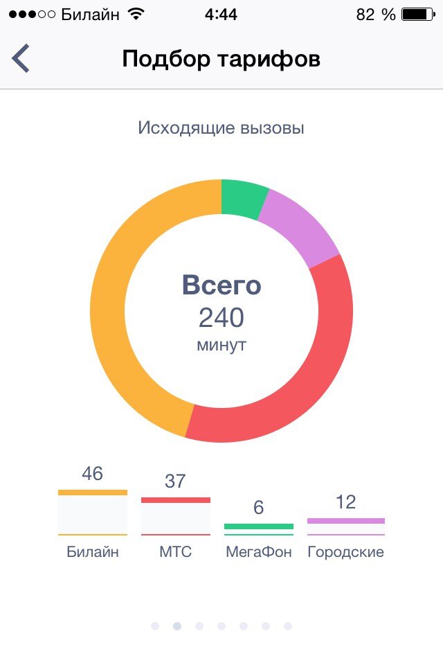После активации Dr. Tariff соберет данные за последний месяц и предоставит полную информацию по звонкам, смс-сообщениям и расходу интернет-трафика. Причем в статистике будет указано, на номера каких компаний были сделаны звонки и отправлены сообщения. То есть, вы наглядно узнаете, услугами какого оператора пользуются люди, с которыми вы чаще общаетесь.