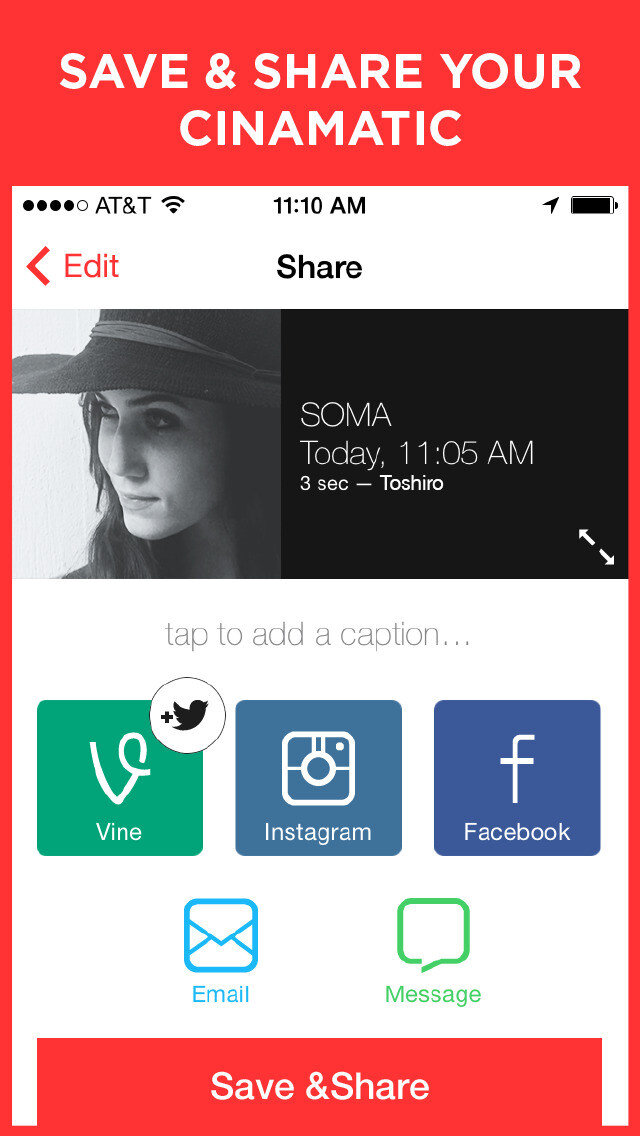 Cinamatic для iOS – видеосервис, который пытается отобрать свою долю пирога у популярного ресурса Vine, предлагая владельцам мобильных устройств записывать короткие видеоролики.