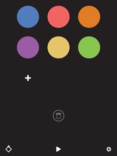 Итак, перед нами плитка из разноцветных кружков, изначально из трех в ряд. Тапаем на любой из них и переходим непосредственно в наше «рабочее поле». Тут такие же кружки, только одноцветные, и теперь их больше, по четыре в ряд. Между кружками бегает белый маркер. Он просто отсчитывает время и показывает, в какой момент будет задействован тот или иной круг. Наша задача – тапнуть на любые кружки и выбрать звук, который должен играть в тот момент, когда они «включены». Вероятно, звучит сложно, но на самом деле с таким методом управления разберется любой пятилетний ребенок.