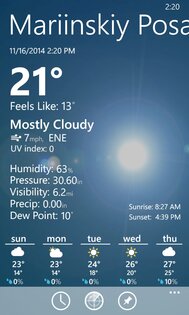 Благодаря этой фишке вы узнаете текущий прогноз, даже не разблокировав смартфон. И даже в этом случае картинка (правда, статическая) будет меняться в зависимости от погодных условий и времени суток. Распространяется Amazing Weather HD для Windows Phone бесплатно, но проработает всего пару дней. За дальнейшее использование программы придется заплатить около 2$.