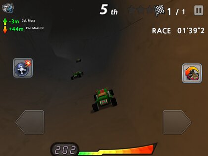 Если противник оказался впереди, смело запускайте в него ракету и смотрите, как его машинка начинает кувыркаться по дороге. Правда, велики шансы и самому оказаться на его месте. За каждую гонку победитель получает деньги, которые позволят прокачать машину или купить новую. Нет денег — нет прогресса.