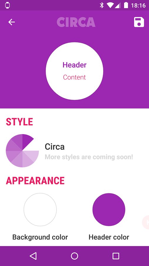 Circa может установить красивую анимацию на появление свежий уведомлений, например нотификации будут появляться в красивом анимированном циферблате. Пользователю доступна возможность выбирать свои цвета и прочие настройки анимированных уведомлений.