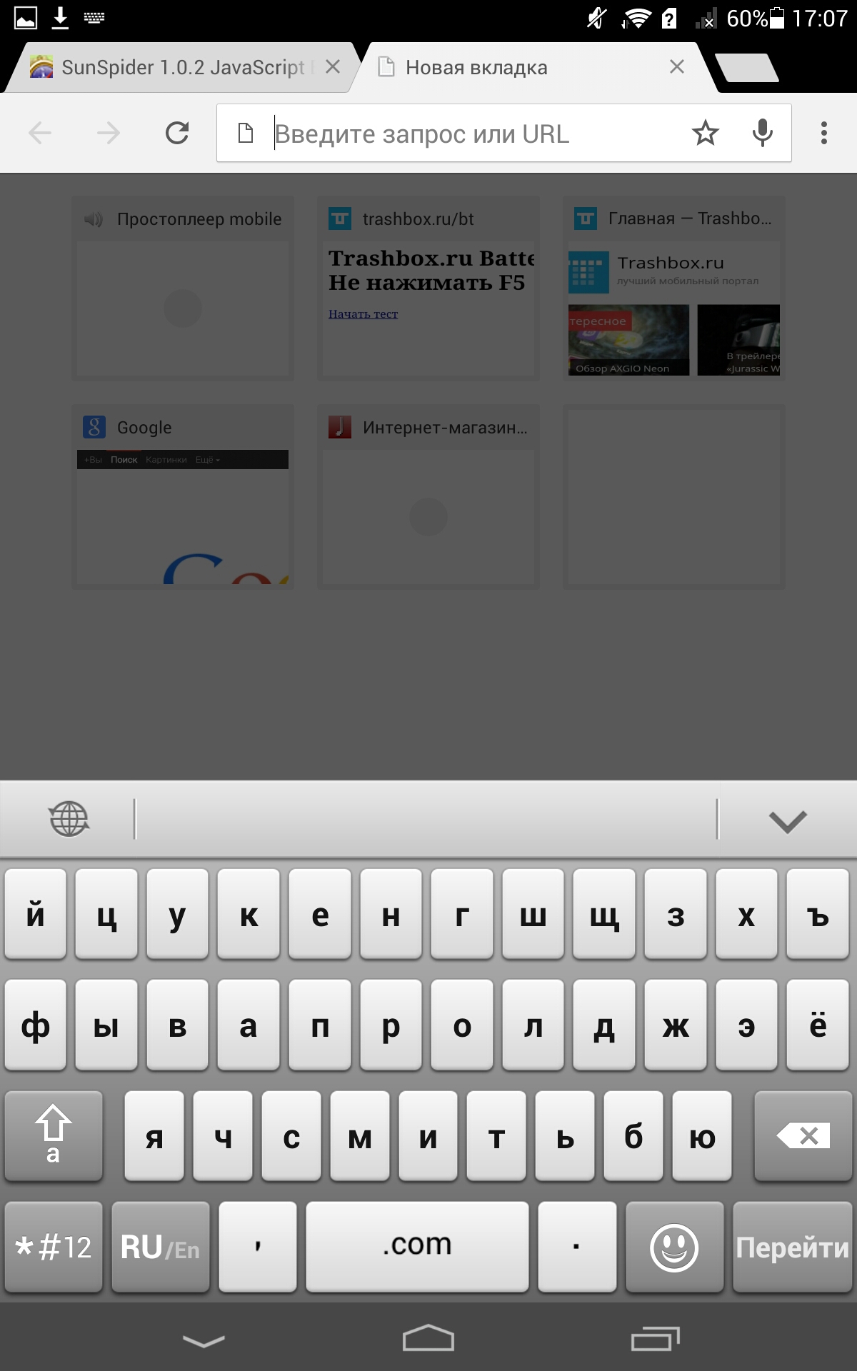 Стандартная клавиатура имеет неплохой внешний вид, однако имеет очень крупный огрех в функционале. Если в браузере Chrome зайти в строку ввода поискового запроса или URL и включить русскую раскладку, то с клавиатуры пропадет пробел. Соответственно вы лишаетесь возможности сразу вводить поисковый запрос на русском языке и вынуждены каждый раз ходить на заглавную страницу Google, или другого выбранного вами поисковика. Поле для на стартовой странице Chrome обладает аналогичной проблемой.