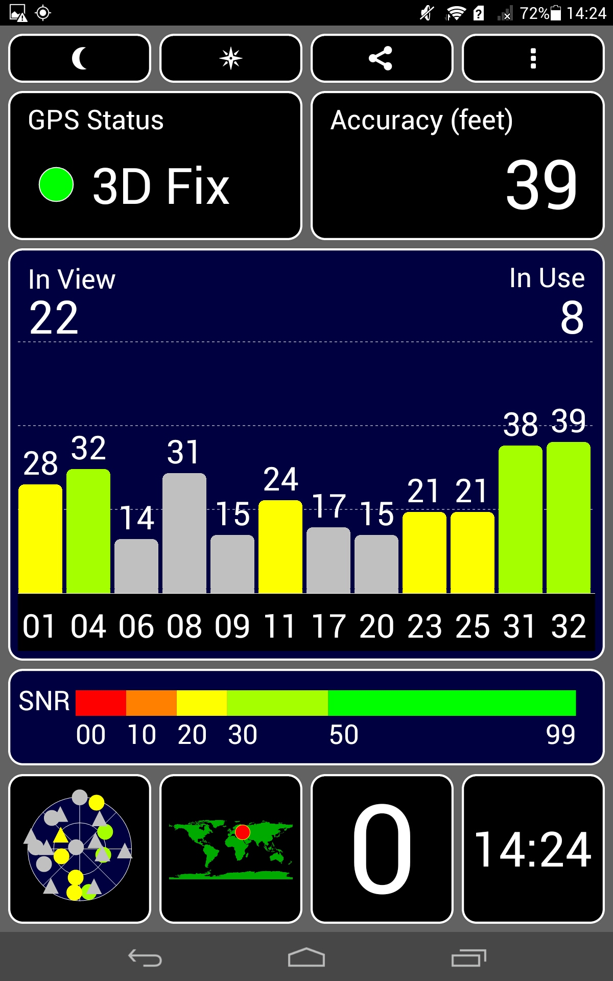 Модуль Wi-Fi поддерживает работу в стандартах a/b/g/n и в двухдиапазонном режиме. Bluetooth 4.0 поддерживает работу технологий A2DP и EDR. Модуль позиционирования работает не только с американскими спутниками GPS, но и с такой родной ГЛОНАСС. В течение 30 секунд модуль обнаружил 22 спутника с хорошим сигналом работал с 8 из них.