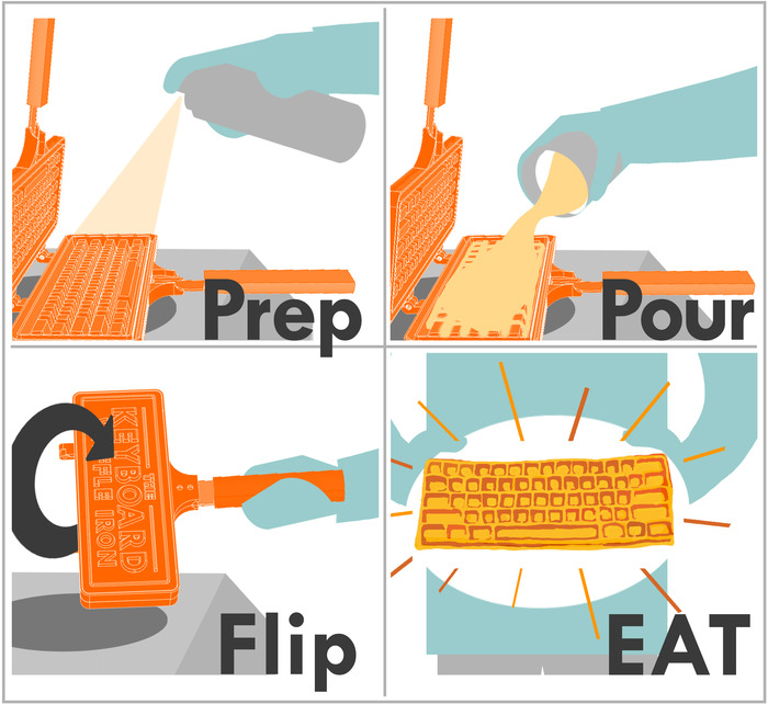 Почему именно форма клавиатуры? — Крис Даймино объясняет, что клавиши на классической компьютерной клавиатуре идеально подходят в качестве разделения большой вафли на порции. Стоит отметить, что каждый человек, пожертвовавший деньги в проект Keyboard Waffle Iron, кроме самой вафельницы получит также и цифровую книгу рецептов для изготовления различной интересной выпечки с помощью этого устройства. Если вы не знаете что такое вафельница, то они обычно представляют собой формы для запекания теста.