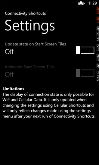 Программа ConnectivityShortcuts предназначена для быстрого доступа к основным настройкам соединений Вашего смартфона Nokia.