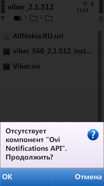 * Отсуствует компонент «Ovi Notifications API». Продолжить? *