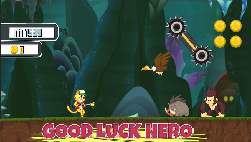 Cat Hero – забавный раннер для Android про милого котейку с автоматом.