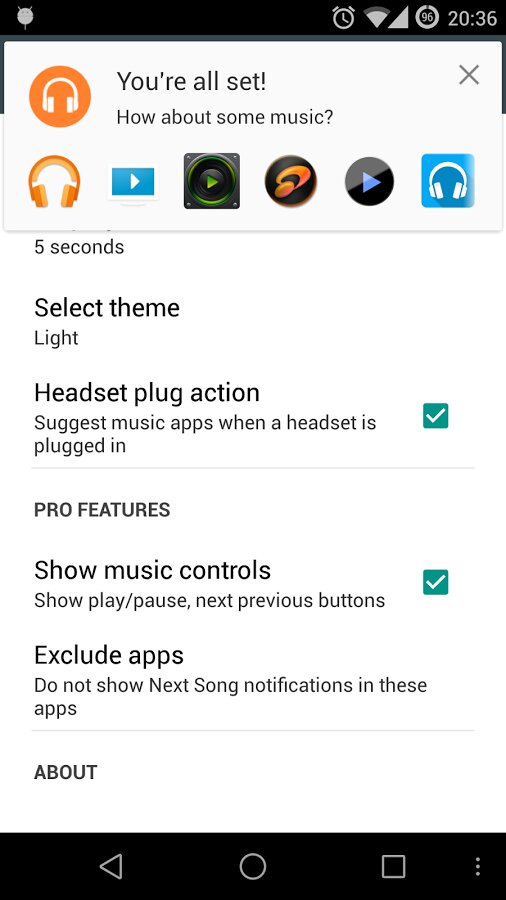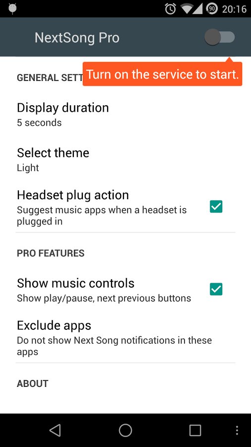 Небольшое приложение NextSong — Music Notifications может выводить простые уведомления о новом треке, а также в программе присутствует возможность вывода полноценных уведомлений с возможностью управления воспроизведением музыки. В платной версии программы присутствует некоторый дополнительный функционал.
