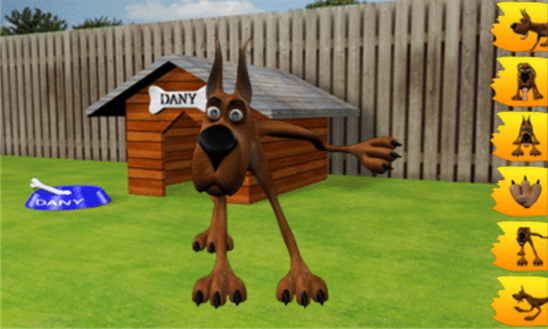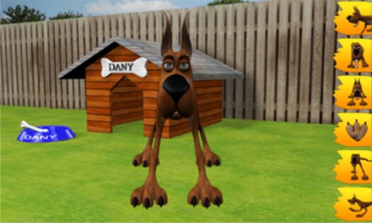 Dany The Dog – симулятор собаки в вашем телефоне, с которой вы сможете играть и разговаривать. Дэни так зовут этого пса, который может стать вашим лучшим другом, это не обычная собака, а говорящая. Он будет развлекать вас, проделывая различные смешные вещи такие как: лизать вас, рычать на вас, работать, писать и царапаться. Разговаривайте с вашим питомцем и записывайте ваш голос, а затем пес будет повторять ваш разговор, смешным голосом который вы сможете самостоятельно регулировать. Играйте с вашей собакой и наслаждайтесь этой игрой, давая различны команды вашему питомцу.