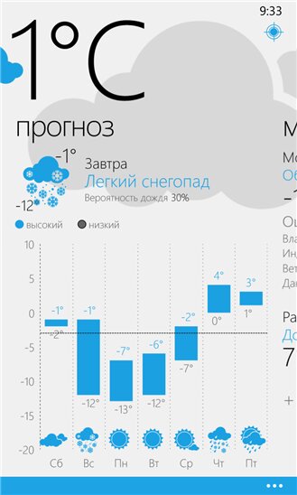 — Текущие погодные условия, прогноз на ближайшие 12 часов, прогноз на неделю, можно отслеживать до 4 местоположений…