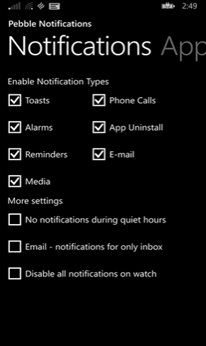 Как стало известно, приложение Pebble для Windows Phone было замечено в фирменном магазине приложений для этой платформы — Windows Phone Store. Информация о программе и ее скриншоты появились на платформе Yammer. Отмечается, приложение будет поддерживать оригинальные часы Pebble, а также новые Pebble Time, которые продолжают собирать огромные суммы на KickStarter. Сама программа будет отвечать за настройку уведомлений, которые будет получать Pebble от смартфонов с Windows Phone — выключение уведомлений, отключение нотификаций во время «тихих часов», а также уведомления только для входящих писем в почте.