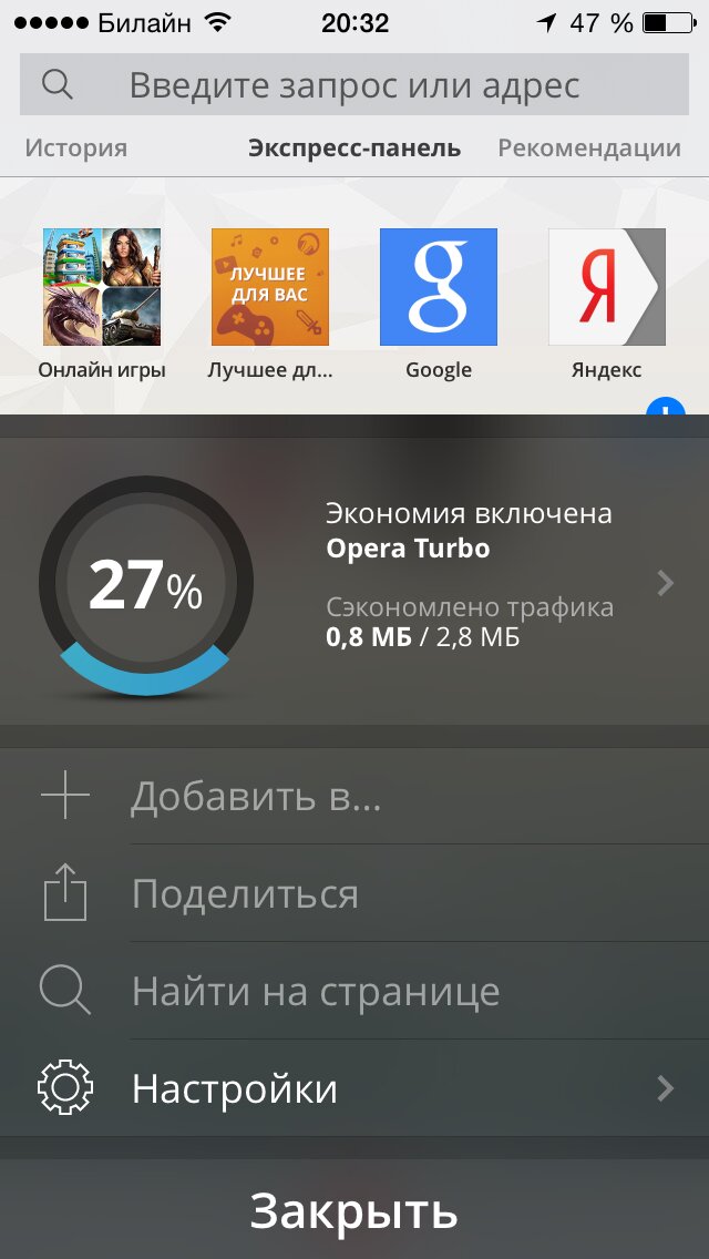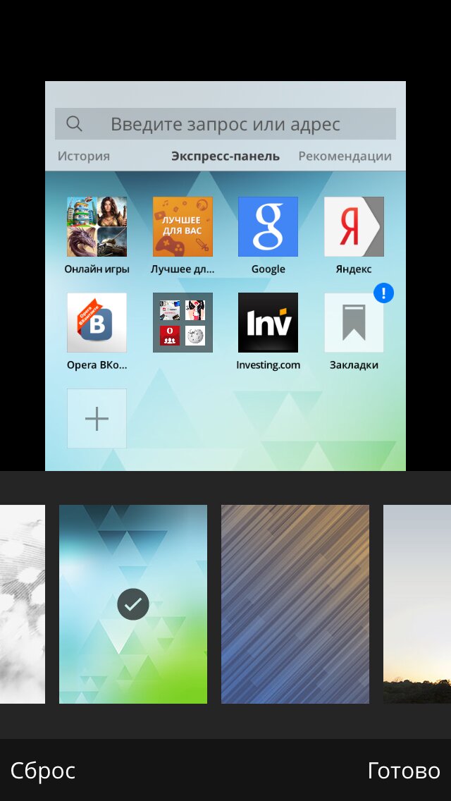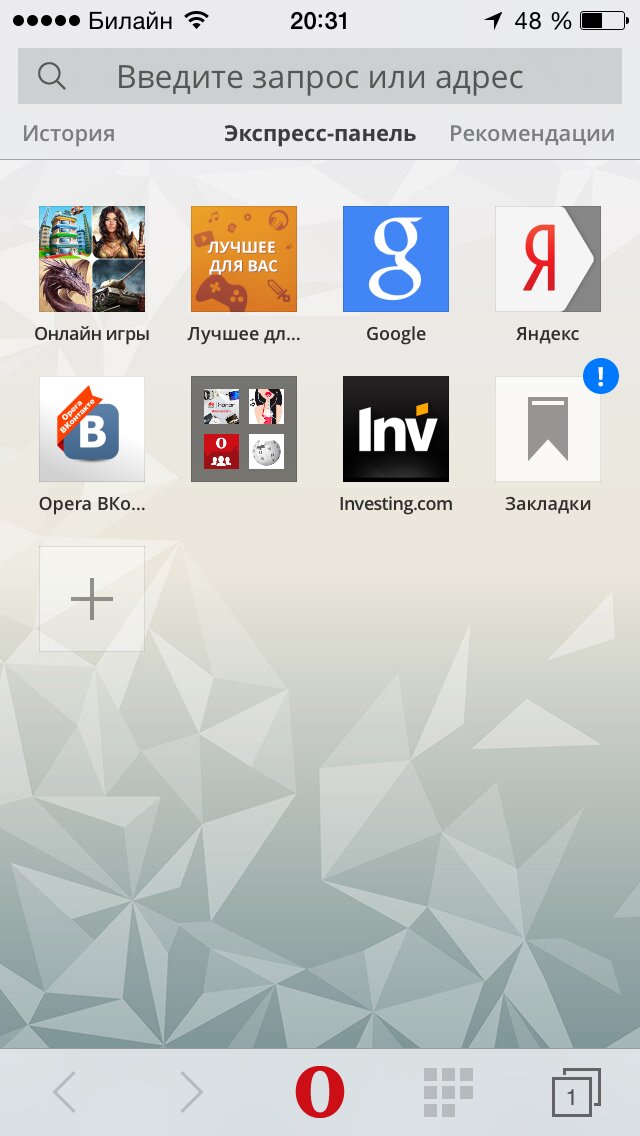 Переключение между страницами обеспечивают вкладки, а Экспресс-панель открывает доступ к любимым сайтам в один клик.