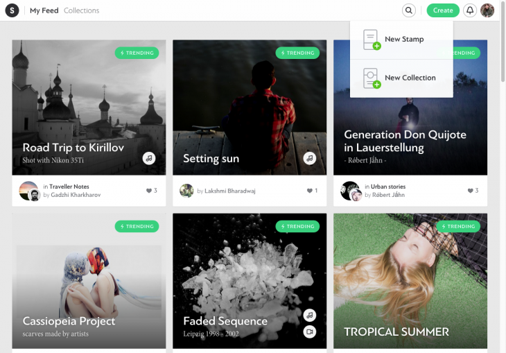 Stampsy — это социальная платформа, с помощью которой можно делиться своими историями, а также фотографиями. Stampsy предоставляет возможность отличной качественной визуализации, чтобы вы, например, смогли публиковать свои художественные работы. У вас есть возможность создавать на данном ресурсе страницы, которые называются Stamр (штамп, марка), которые вы наполняете всяческим контентом: изображениями, текстом, аудио- и видео-материалом. Кроме того, создание одной такой страницы займет у вас считанные минуты.