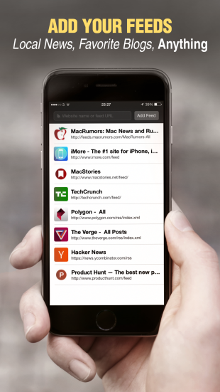 Программа Breaking для iOS позволяет читать ваши любимые RSS-ленты новостей прямо в центре уведомлений на iPhone или iPad. Работает это так: сначала вам необходимо «забить» в приложение свои любимые RSS-ленты, после чего приложение будет их автоматически подгружать, а в центре уведомлений всегда будут показываться пять последних публикаций; по тапу на заголовок можно перейти на сайт и прочесть понравившийся материал. На словах уже звучит довольно громоздко, но чтение RSS в Breaking реализовано довольно просто, удобно и без лишних элементов, которые бы могли захламлять ваш центр уведомлений. Единственный минус Breaking — невозможность синхронизации с аккаунтами таких популярных RSS-агрегаторов, как Feedly, NewsBlur или FeedBurner.