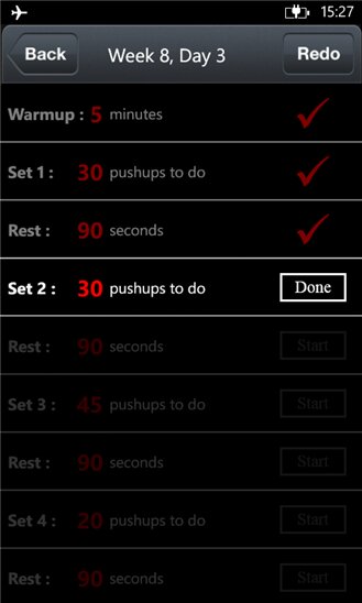 С помощью «4-in-1 Fitness Pushups, Situps, Squats & Pullups» можно превратиться из хиляка, в парня, который в лёгкую отжимается по сто раз. На самом деле в приложении можно найти много интересного: фитнес-программы, аудио-тренера, советы, достижения с мотивацией, и другие полезные функции.