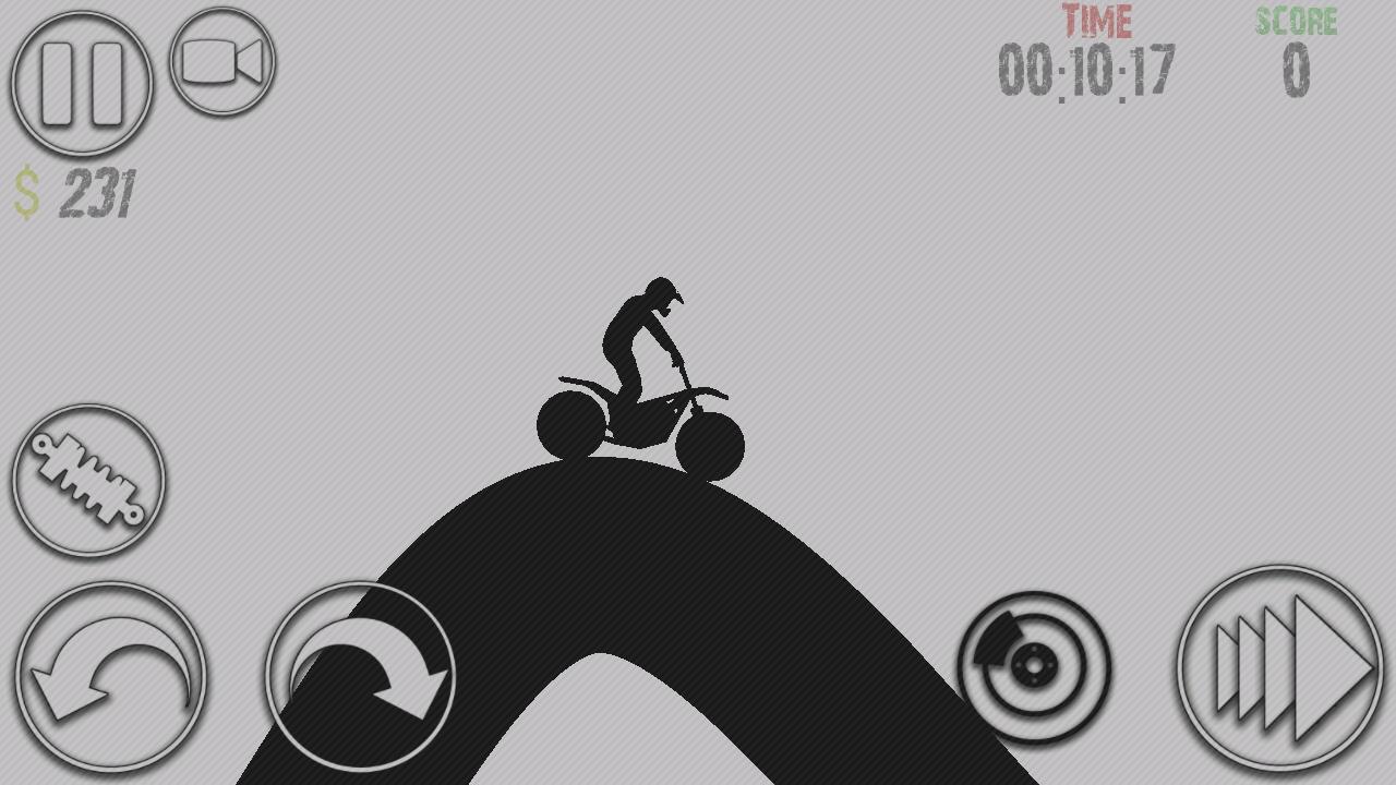 Заезды проходят в монохромном мире. Каждое испытание состоит из извилистых и бугристых дорог, которые очень тяжело преодолеть. Новичкам в таком жанре поначалу трудно освоиться, а потому первые несколько десятков минут предстоит обучаться основам управления. Необходимо уметь рассчитывать прыжки, вовремя газовать и правильно замедляться. Сальтушки в воздухе и невероятные прыжки – обычное дело для подобных игр. С каждым уровнем сложность увеличивается, а трасса напоминает непроходимую полосу препятствий.