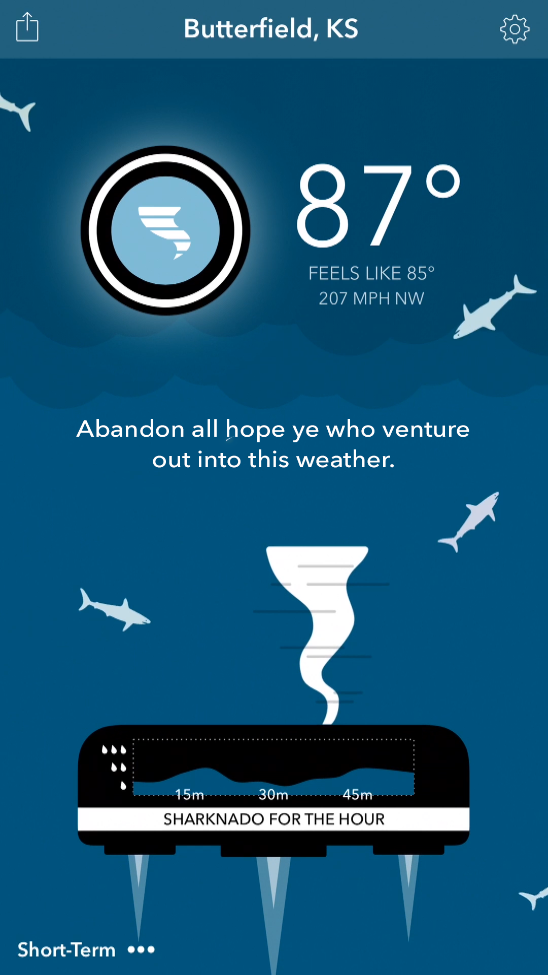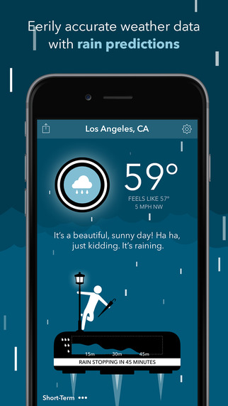 Тема с летающими акулами укажет на то, что в районе вашего места расположения стоит ожидать торнадо. Злые пингвины намекнут на то, что вскоре может начаться снег. Ну а перемещения вверх-вниз по экрану смартфона улыбающихся атомных дымовых труб подскажут, что день будет облачным. По-моему, ни одно другое погодное приложение не является таким забавным и интересным. Хотя, возможно, оно вам быстро надоест. Конечно, кроме веселых картинок, как сообщает разработчик, вы получите самый точный прогноз погоды. Возможно, цена $2.99 за данное приложение и стоит того, чтоб порадовать себя.