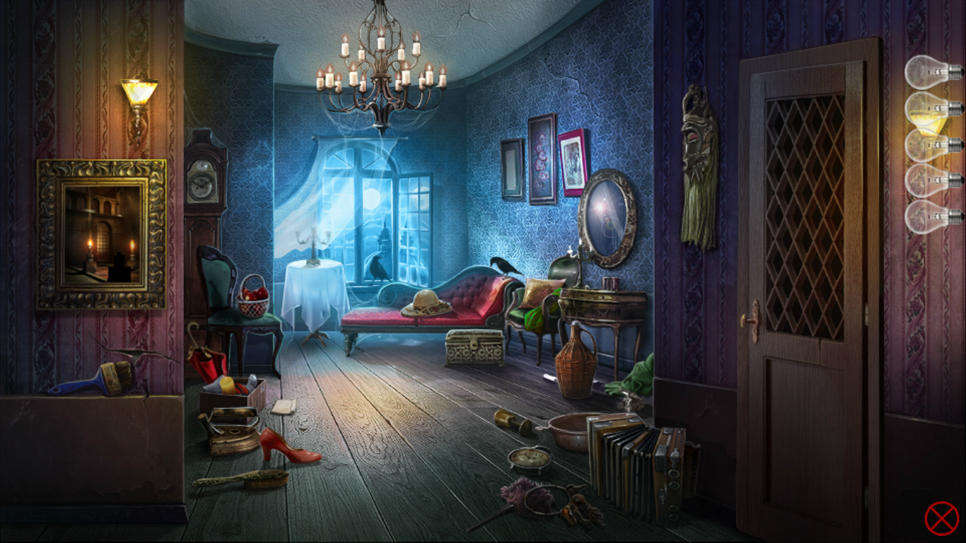 Чтобы перейти на новый уровень, необходимо найти пять объектов, чтобы загорелось пять лампочек.