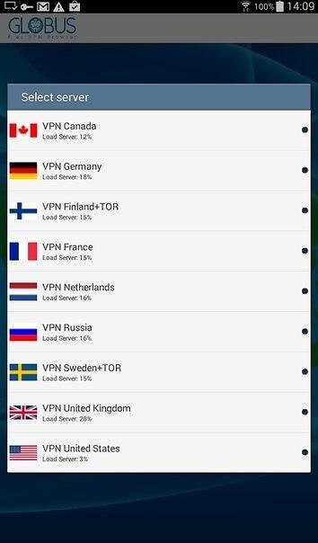 - На выбор девять стран, два сервера с Tor(Финляндия и Швеция)